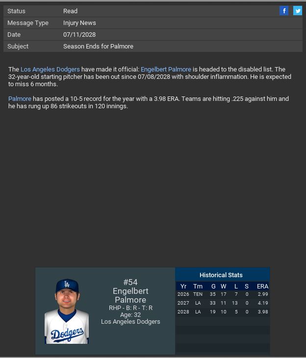 Mets lose RP Caleb Meyer for the season. Dodgers lose SP Engelbert Palmore for the season. White Sox lose SP Steve Foster for the season.