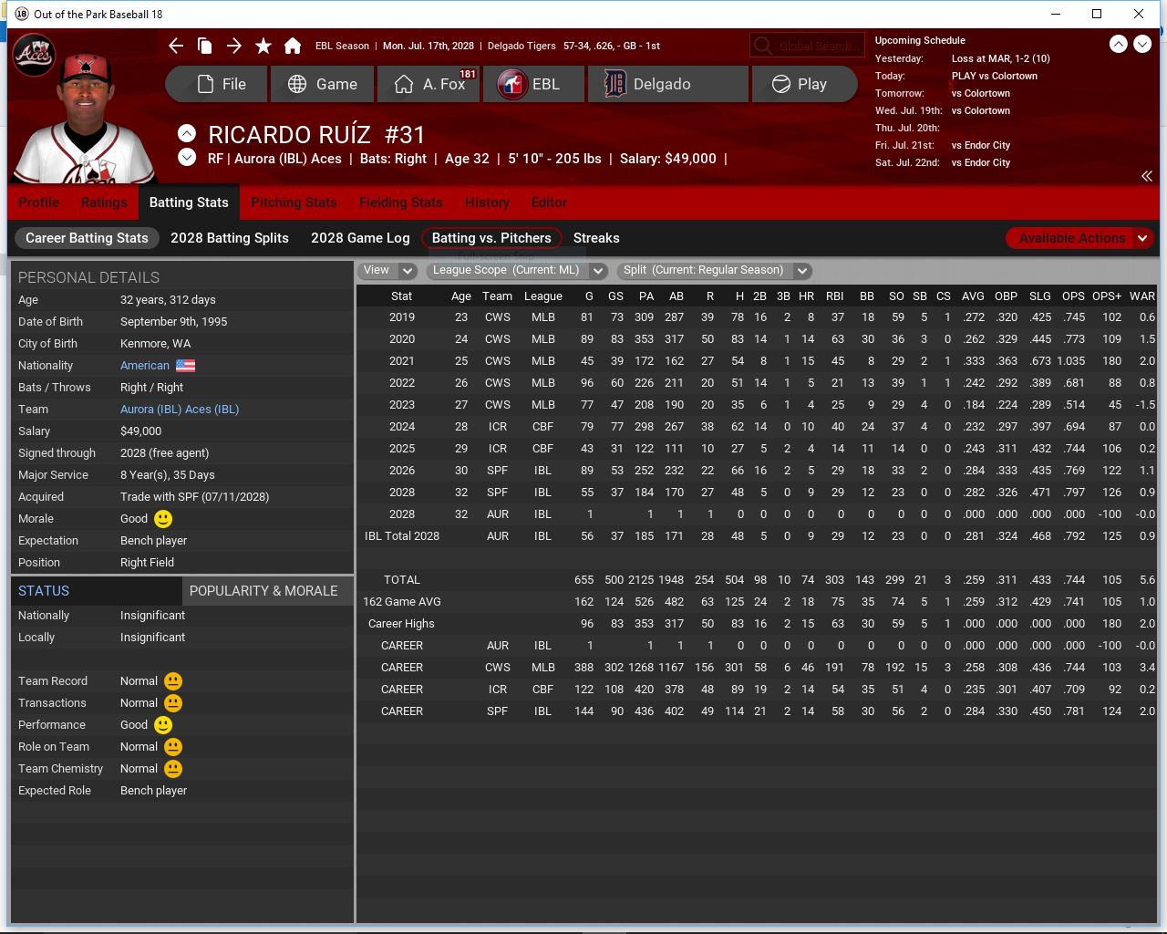 July looks to be a tough month especially since we struggle vs teams over .500. GC,MAR, CT, EC, GC & RT. We only play 6 games vs teams under.500. I think we are looking at 14-11 this month.