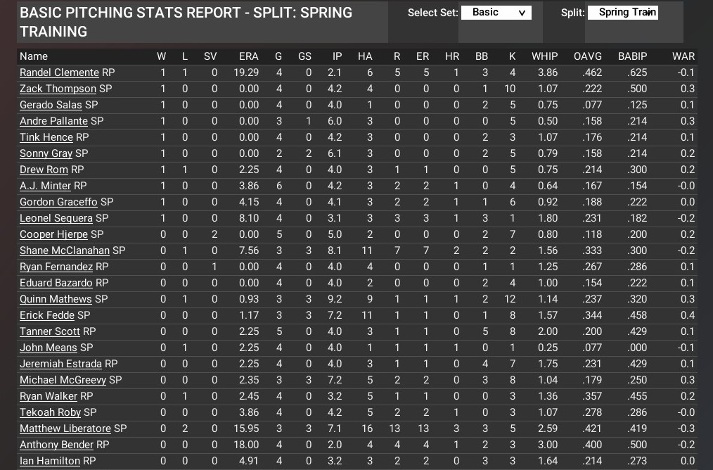 Cards news: March 9 -- Spring Training Week 3 - Team statistics