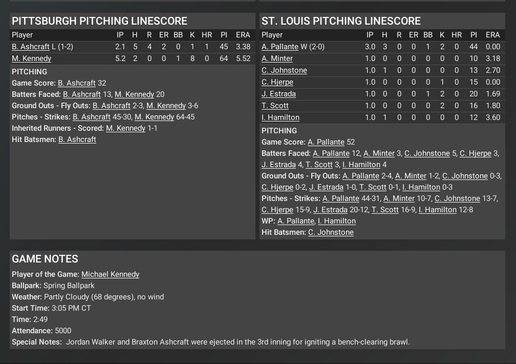 Cards news: March 13 -- Spring Training - St. Louis Cardinals 4, Pittsburgh Pirates 0, (12-9-1)