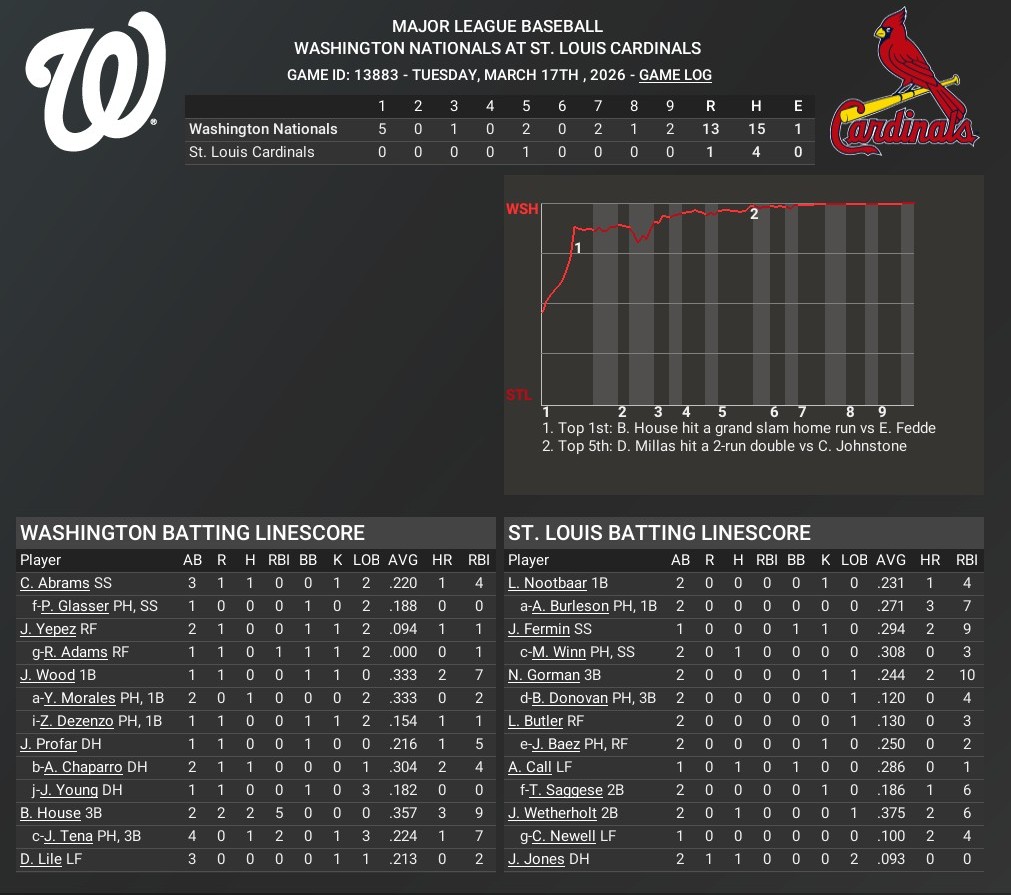 Cards news: March 17 -- Spring Training -- Washington Nationals 13, St. Louis Cardinals 1, (12-12-2)
