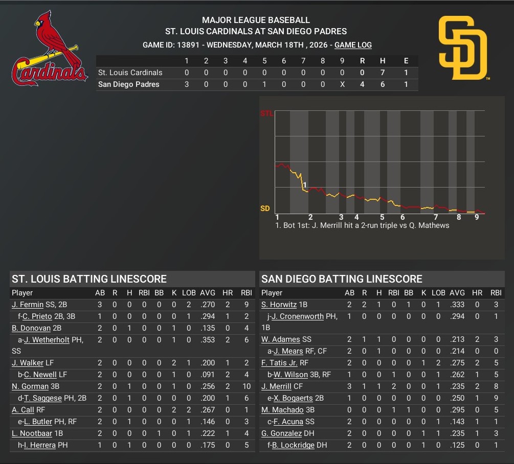Cards news: Sept. 18 -- Spring Training -- San Diego Padres 4, St. Louis Cardinals 0, (12-13-2)