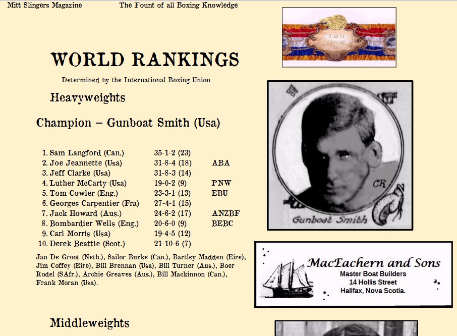 Mitt Slingers Magazine has received an advance copy of the official programme for the Gunboat Smith-Bombardier Wells world heavyweight championship fight and presents it here along with snippets of the pre-fight press from three major newspapers...