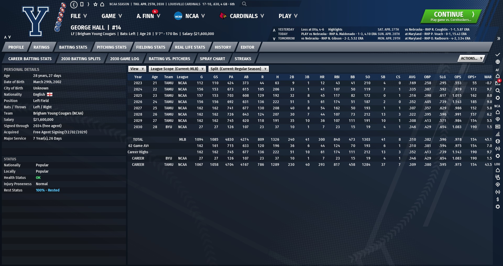 Fan of LSU sports (especially baseball and football), New Orleans Saints, New Orleans Pelicans, and Atlanta Braves (Dale Murphy for the HOF!). Current dynasties: Fallout 4's Commonwealth Baseball Organization Completed dynasty: Fallout: New Vegas' Mojave Baseball League Uniforms: My custom uniforms |