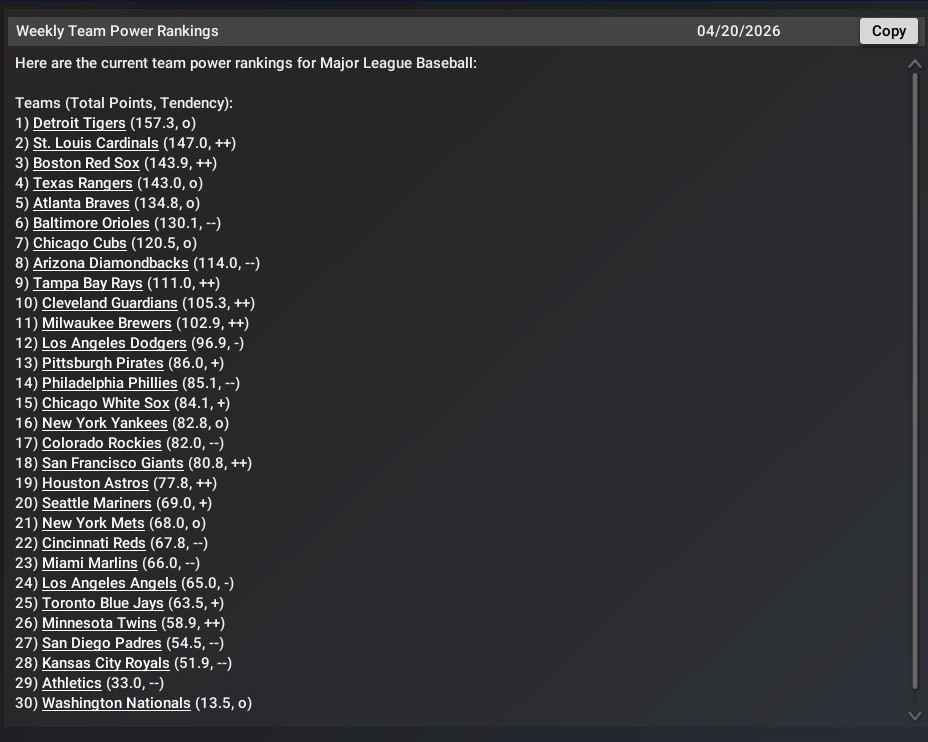Record: 14-6, 1st, 2.5 GA Chicago Cubs