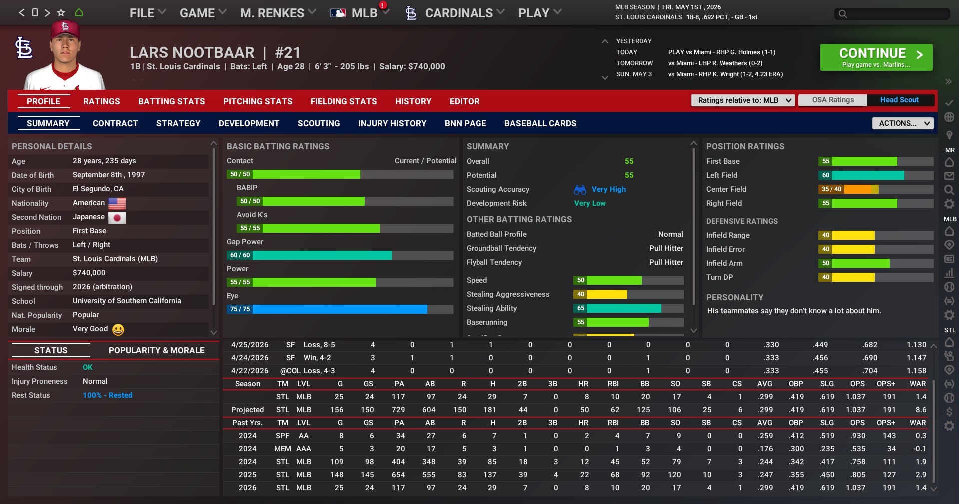 Record: 14-7, 2nd, 1.5 GA Chicago Cubs