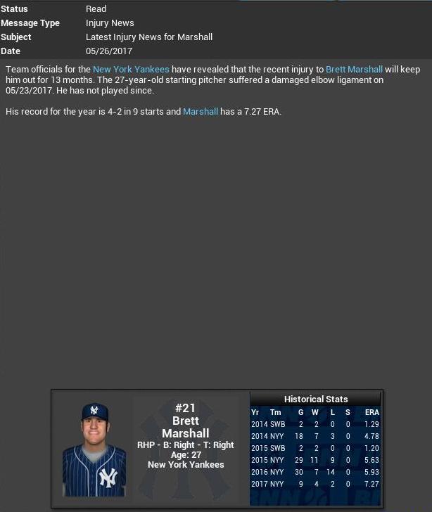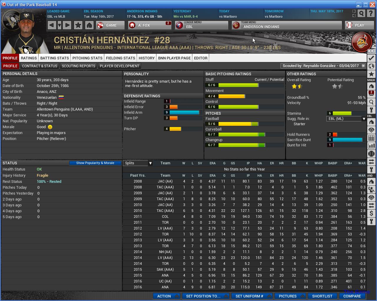 I signed Christian Hernandez, in hopes that he can start in a few weeks if need be. I also have a pending offer to SP Tim Cockshut. Losing Elsk Hopkins may hurt Highland's chances of keeping up with Springfield & Bird City. Bad news for Knutsen.