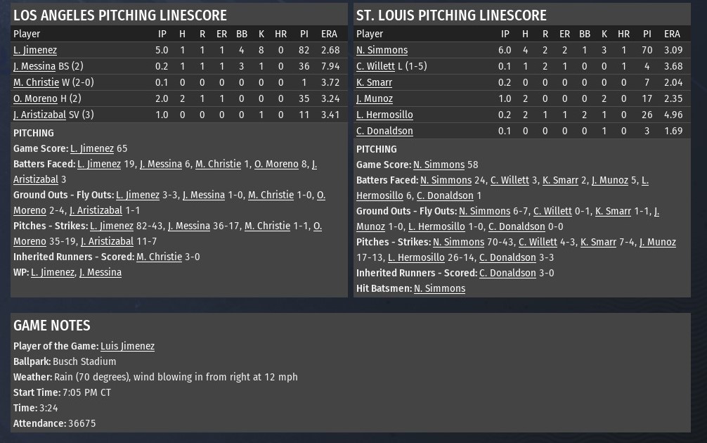 Juan Farias tossed a three-hit shutout and Mark Waterson homered three times as St. Louis routed Milwaukee 9-0 at Miller Park (2020). The win was the second of the three-game series for the River Walkers. Farias didn't allow a hit until Dylan Crews singled for the Crushers with one out in the bottom of the fifth inning. The only other hits he allowed were a double by Crews to lead off the eighth and an Andy Burhoe single with one out in the ninth. For the game, Farias (2-5) allowed no runs on three hits. He struck out five and walked two. It is his first career shutout. For Waterson, it's been a tough season but he finally busted loose in this contest. Waterson homered in the second and fourth innings off Crushers starter Caleb Walkers. The first was a two-run homer, the second a solo shot. He later took reliever Mike Harney deep in the eighth, another solo shot, for the first three-home run game for St. Louis since Manuel Coke pulled it off on Oct. 1, 2039 against Madison. Waterson, who finished 4 for 5 with four runs scored and six RBIs, also accomplished the feat on July 9, 2039, against Toledo. As for the game, Waterson's first two-run homer put the Walkers in front 2-0. They would add single runs in the third, fourth, sixth and seventh innings before scoring three times in the eighth. Last edited by rink23; 07-28-2022 at 06:24 AM. |