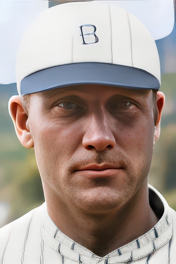 Joseph Chester "Boob" Fowler colorized with the Cincinnati Reds. Upscaled once by deep nostalgia.ai, twice using Pica.ai, colorized with kolorize.cc and heavily tweaked using GIMP.