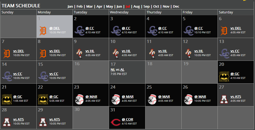 We have 30 days to get back into the race in the AL East & wildcard, otherwise i will start trading off most FA's to be, namely Satchel Paige. Hopefully Paige has a strong July. Right noiw he has more BB than K. I can't afford to resign him, so if i can not trade him he will walk.