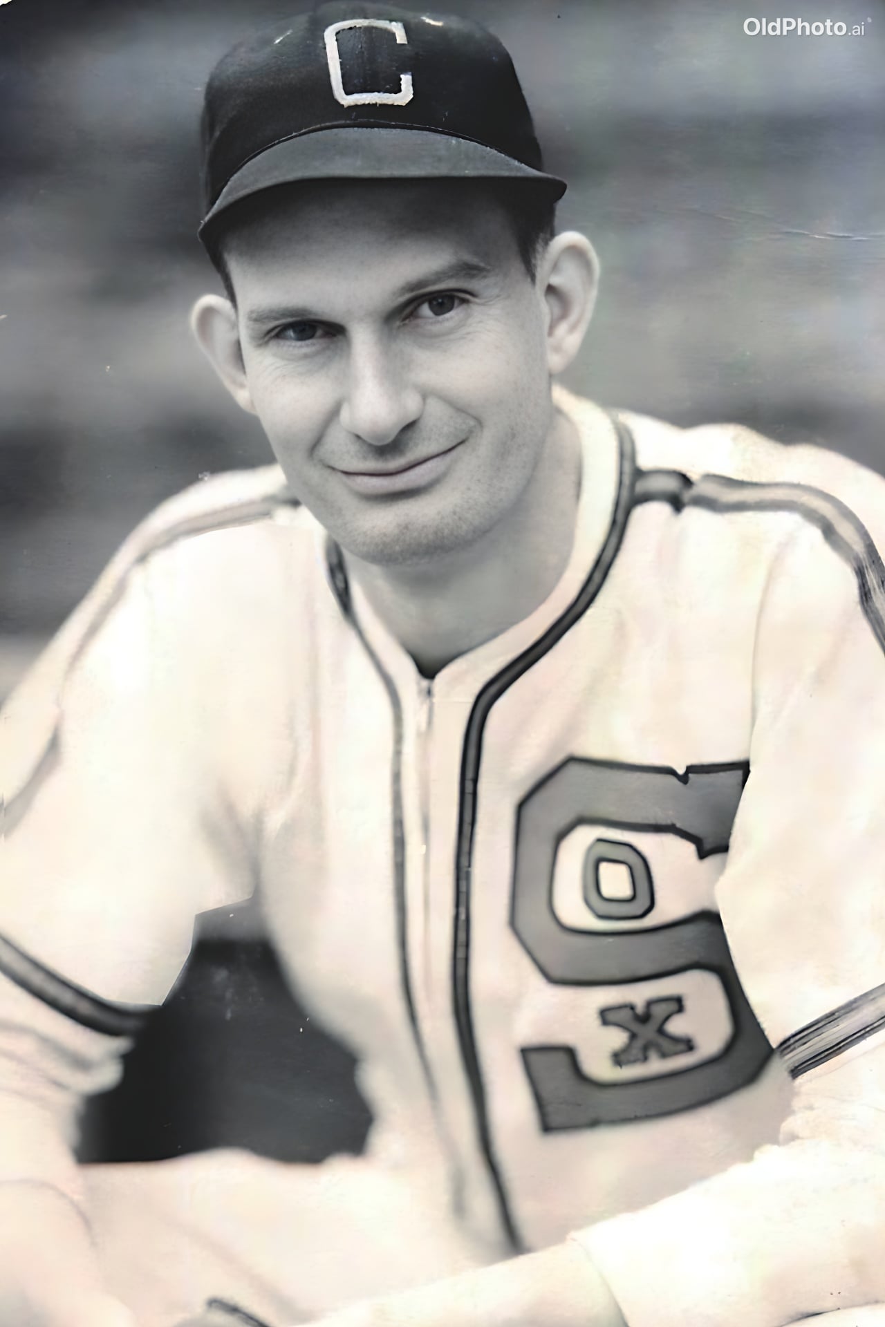 Ralph Conant "Bruz" Hamner colorized with the Chicago White Sox. Upscaled using deepnostalgia.ai with color assist from kolorize.cc