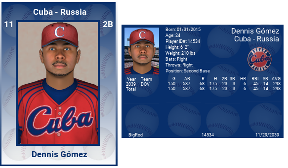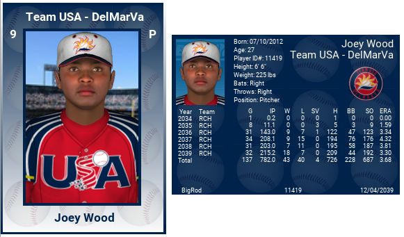 --- Check out my OOTP dynasty, the DelMarVa Baseball League: DelMarVa Baseball League. and the spin off: DelMarVa Baseball League - 2037 WBC Tournament - Won by Team USA - New England. DelMarVa Baseball League - 2039 WBC Tournament - Won by Team USA - New England.. |