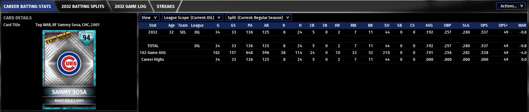 Also a pull hitter. *sigh* Not sure how a guy with an 87 power rating (89 vs RHP) in a 1.1 HR park is on pace for under 10 HR playing every game. .088 ISO seems a bit low. Last edited by zrog2000; 03-05-2019 at 05:07 PM. |