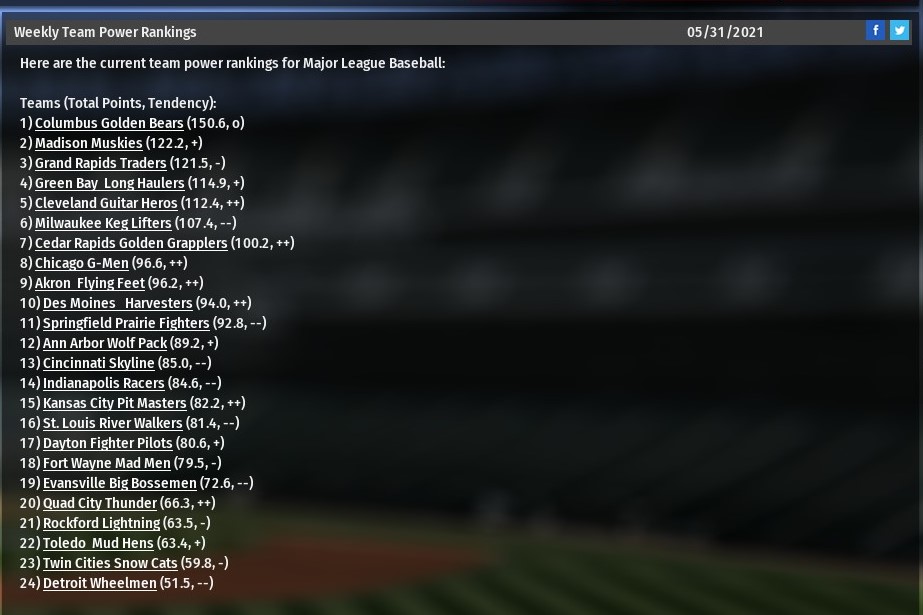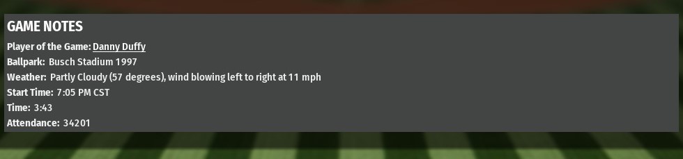 Down 4-3, Milwaukee scored twice in the top of the sixth inning to help carry it to a 6-4 win over St. Louis at Busch Stadium (1997). It all came down with two outs. Clint Frazier singled with one out off River Walkers starting pitcher Luiz Gohara. A walk to Kyle Seager followed by an Addison Russell single, which scored Walker. A pinch-hit single from Juan-Antonio Gomez then loaded the bases. Phil Maton came on in relief for Gohara, but Austin Hedges hit a single. Seager scored but Russell was thrown out at the plate to end the inning. The Keg Lifters added an insurance run in the eighth on a lead-off homer by Frazier off Bobby Poyner. Greg Bird hit a pair of homers for the Lifters, a two-run shot in the first and a solo blast in the third, both off Gohara. The Lifters pulled out all the stop sending eight pitchers to the mound. Starter Sean Hellje handled the first 3.2 innings, allowing four runs on five hits, before leaving with an undisclosed injury. Sean Wymer wrapped up the fourth and tossed a scoreless sixth to earn his first win of the season. Arquimedes Caminero was the last of the Milwaukee pitchers to take the hill. He sent St. Louis down in order in the ninth for his 16th save. Last edited by rink23; 04-08-2019 at 03:19 PM. |