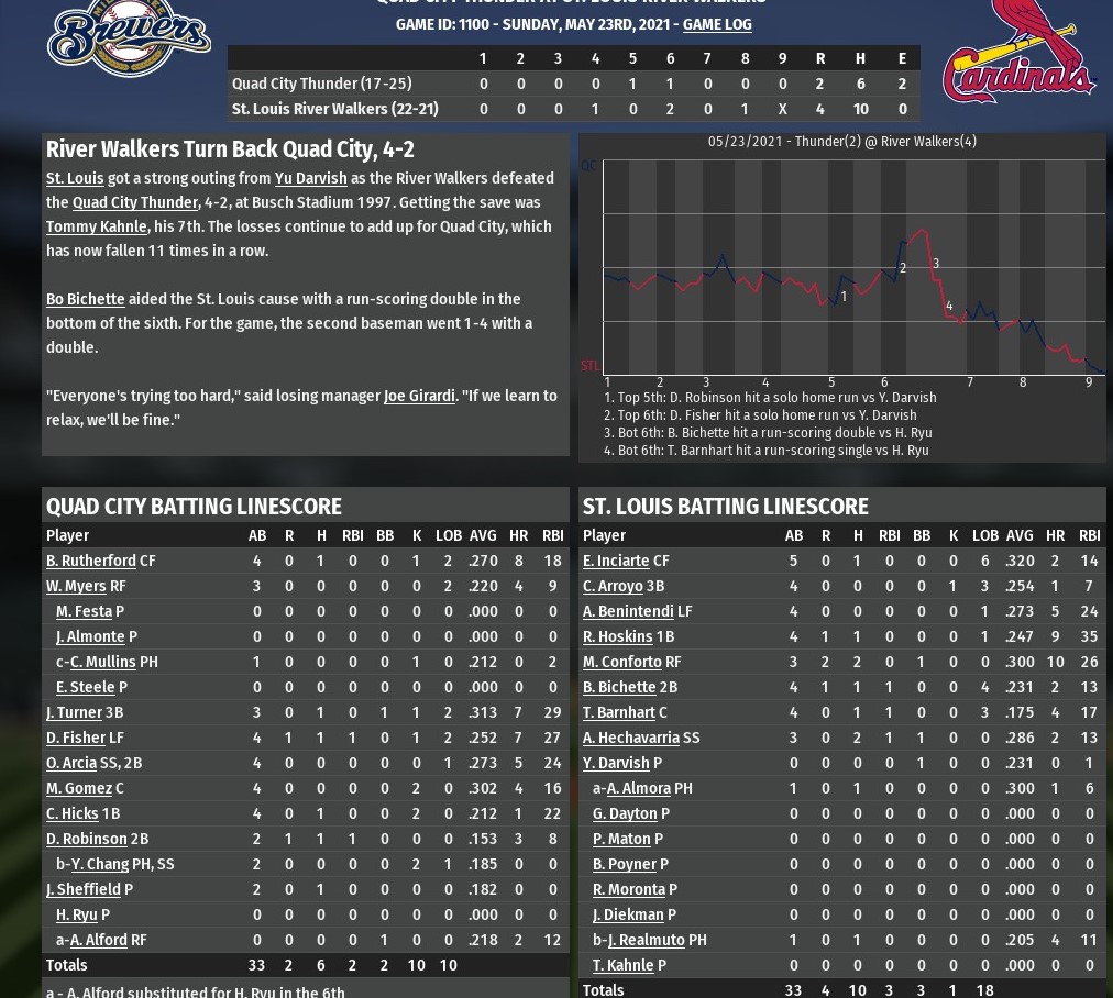 Walkers news: May 28 -- Madison 4, St. Louis 3, Game 2