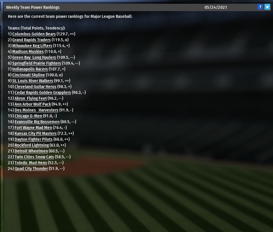 Record: 22-21, 3rd, 3.5 GB Springfield
