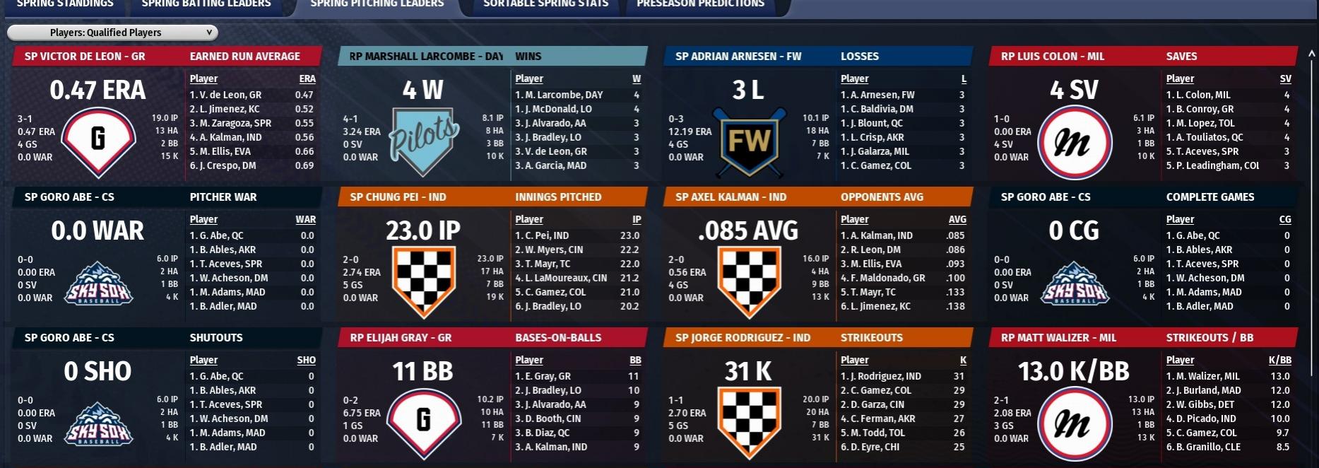 MBL news March 27 -- Spring training standings and leaders after Week 4