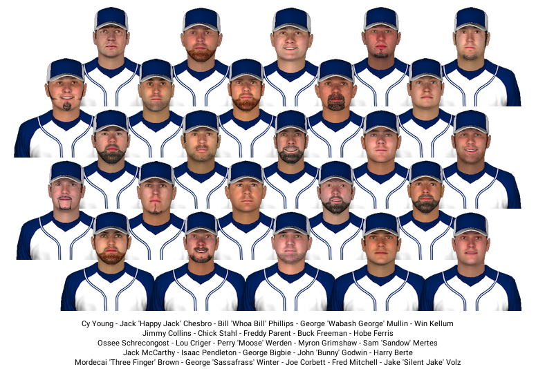 -NL Triple Crown: RF Charlie Hickman of the New York Giants, with a .368 batting average, 22 home runs, and 138 RBIs. -AL batting title: 3B Bill Bradley of the Cleveland Blues, with 5 home runs, 97 RBIs, and 73 runs scored. -NL batting title: RF Charlie Hickman of the New York Giants, with 22 home runs, 138 RBIs, and 112 runs scored. -AL Batter of the Month: 1B Roger Bresnahan of the New York Highlanders, with 3 home runs, 24 RBIs, and 29 runs scored. -NL Batter of the Month: RF Charlie Hickman of the New York Giants, with 2 home runs, 22 RBIs, and 23 runs scored. -AL Pitcher of the Month: Addie Joss of the Washington Senators, with a 5-2 record, 1.57 ERA, and 24 strikeouts. -NL Pitcher of the Month: Willie Sudhoff of the St. Louis Cardinals, with a 6-0 record, 1.64 ERA, and 15 strikeouts. -AL Rookie of the Month: SP Jack Dunleavy of the Chicago White Sox, with a 3-2 record, 2.41 ERA, and 27 strikeouts. -NL Rookie of the Month: RF Doc Gessler of the Cincinnati Reds, with 0 home runs, 7 RBIs, and 5 runs scored. First-place standings AL: Boston Americans, 94-46 (7 games ahead of the New York Highlanders) NL: Philadelphia Phillies, 85-55 (1 game ahead of the Pittsburgh Pirates) Well, the Boston Americans, as in real life, are in the World Series (with a 94-46 record as opposed to 91-47 in real life), but it's the Phillies (85-55) in the World Series for the NL instead of the Pirates!!! |