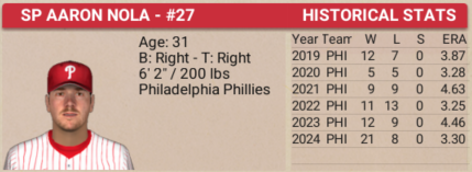 Aaron Nola’s consistency and durability atop the Philadelphia Phillies’ rotation earned him the National League Cy Young Award for the 2024 season. Nola dazzled all year, finishing with a 21–8 record in 33 starts while logging a league-leading 237 innings. He struck out 234 batters against just 40 walks, allowed 207 hits, and posted a 3.30 ERA, while holding opposing hitters to a .232 average. His steady excellence made him the backbone of the Phillies’ pitching staff and a dominant presence throughout the season. San Diego Padres right-hander Michael King (17-8 W/L, 2.80 ERA, 227 K in 221.2 IP, 5.1 WAR) finished second in the Cy Young voting, while Phillies teammate Ranger Suárez (17-8 W/L, 2.85 ERA, 196 K in 227.1 IP, 4.8 WAR) placed third.
