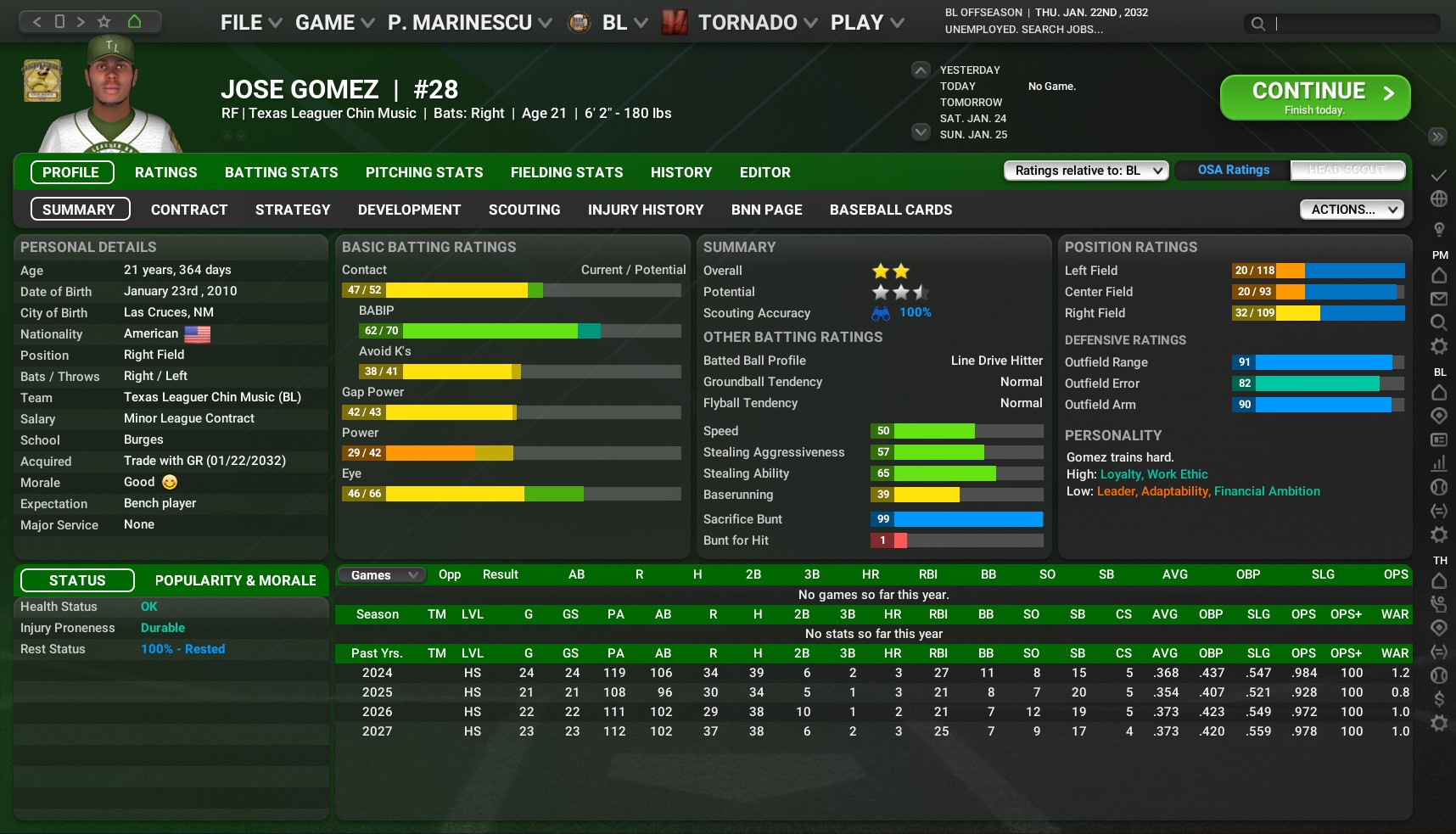 Texas Leaguer Chin Music have signed free agent left fielder Lorenzo Martinez to a 1 year / $36 contract