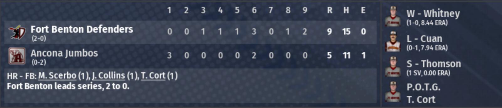 Fort Benton leads series 2-0