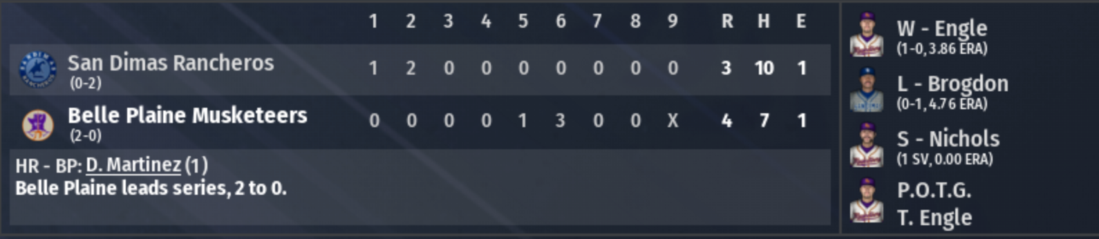 Belle Plaine leads series 1-0