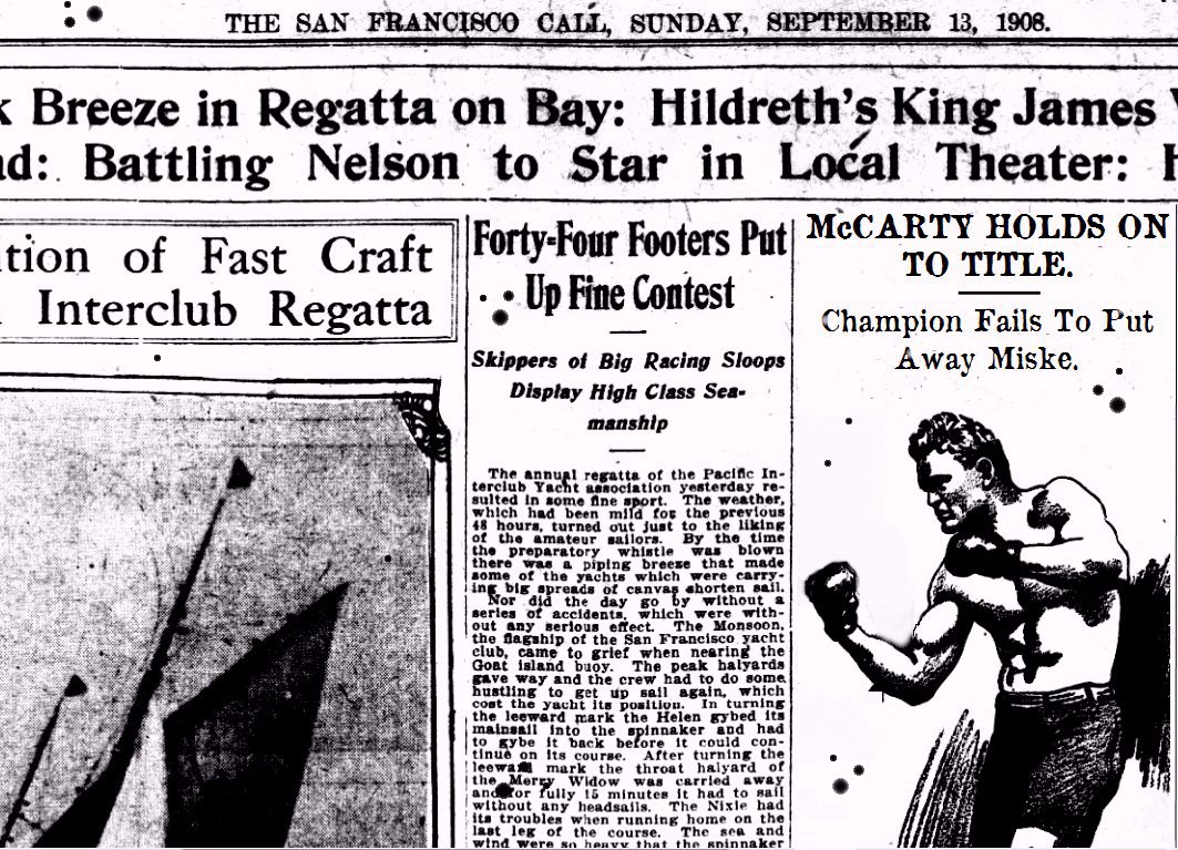 Chicago Daily News: Los Angeles' population, if taken by the census bureau today, would rank the place high among the lesser cities of the country. The city has swollen with the addition of thousands of fight fans from all over. At age 24 Billy Miske expects to weigh just under 190. He stands 6 feet 1 inch and has a reach of 77 inches. McCarty, at 23 should weigh in about 205 ringside tomorrow. He stands 6 feet 2 and a half inches tall and has an 80 inch reach. Miske is faster on his feet but McCarty is a splendidly accurate puncher with a solid set of whiskers. Most wagers are on the fight going the distance with McCarty winning,