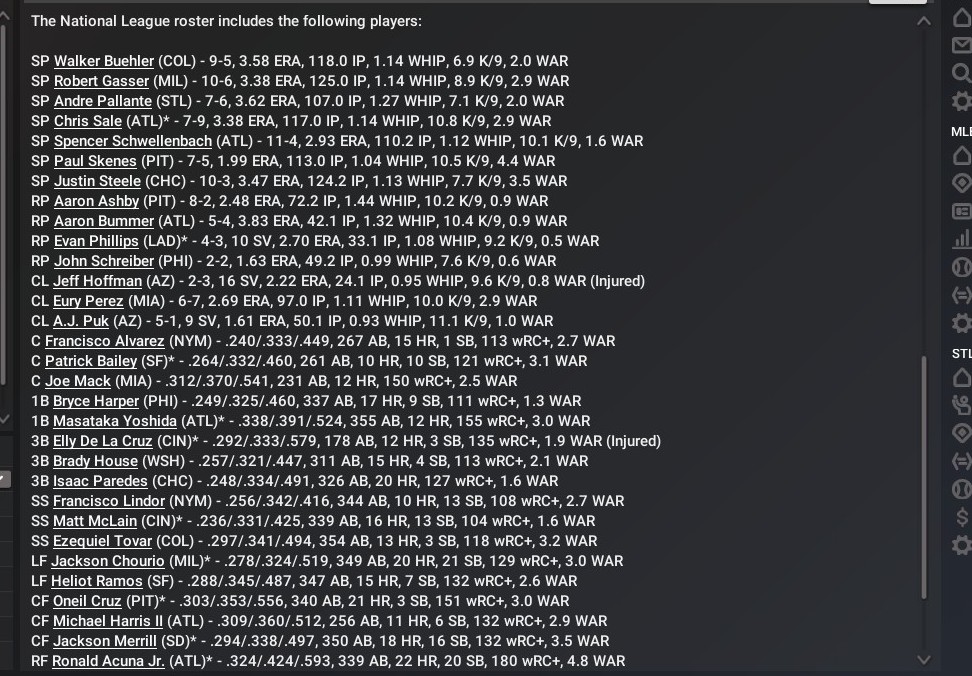 A pair of St. Louis Cardinals, outfielder Lawrence Butler and starting pitcher Andre Pallante, have been named to the National League roster for the All-Star game. It is Butler's second All-Star game nod, as he made the American League team last season while with Oakland. Butler, 26, tops the NL with his 74 RBIs while his 24 home runs are fourth. In 89 game/88 starts, Butler is batting .296 (fifth) while getting on base at a .377 clip (third) and he is third in slugging percentage at .564. This will be the first All-Star game for the 27-year-old Pallante. In 19 starts this season, he has gone 7-6 with a 3.62 ERA. The right-hander has pitched 107.0, during which he has posted 1.27 WHIP and struck out 85. |