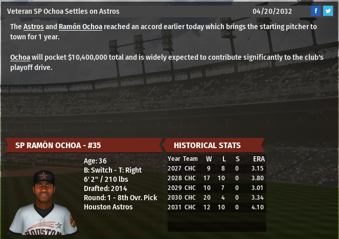 Anaheim loses SP Joe Foster for the season. Milwaukee loses Constantin Andretti for the season. Yankees will miss RP Cameron Brickell for 4-5 months. Lake Venus Cheetahs claim SP Stark off of Waivers from To Kieren Bounty Hunters.