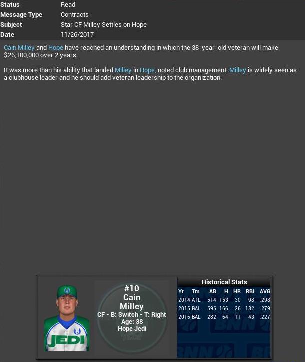 1B Scott burns was traded from Endor City to Brandywine. Great trade for the Power as it gives them another good hitter and the Caps now have Mick Toner at 1B. This could be Brandywine's year. Fatih signs with the Millennium Falcons. Parker reups with the DBacks.
