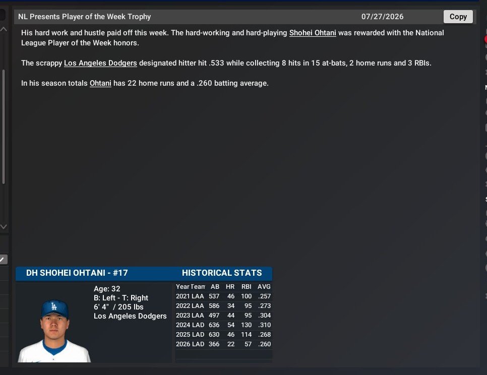 MLB news: July 27 -- Week 16 - Awards and standings