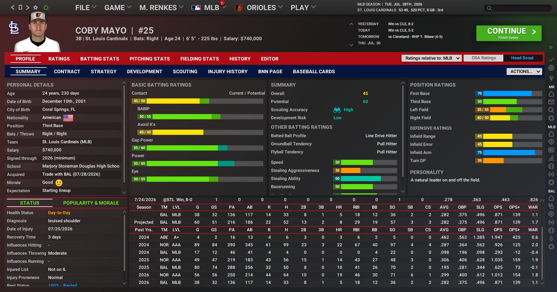Cards news: July 28 -- Trade lands 1B Coby Mayo from Baltimore for LHP Shane McClanahan