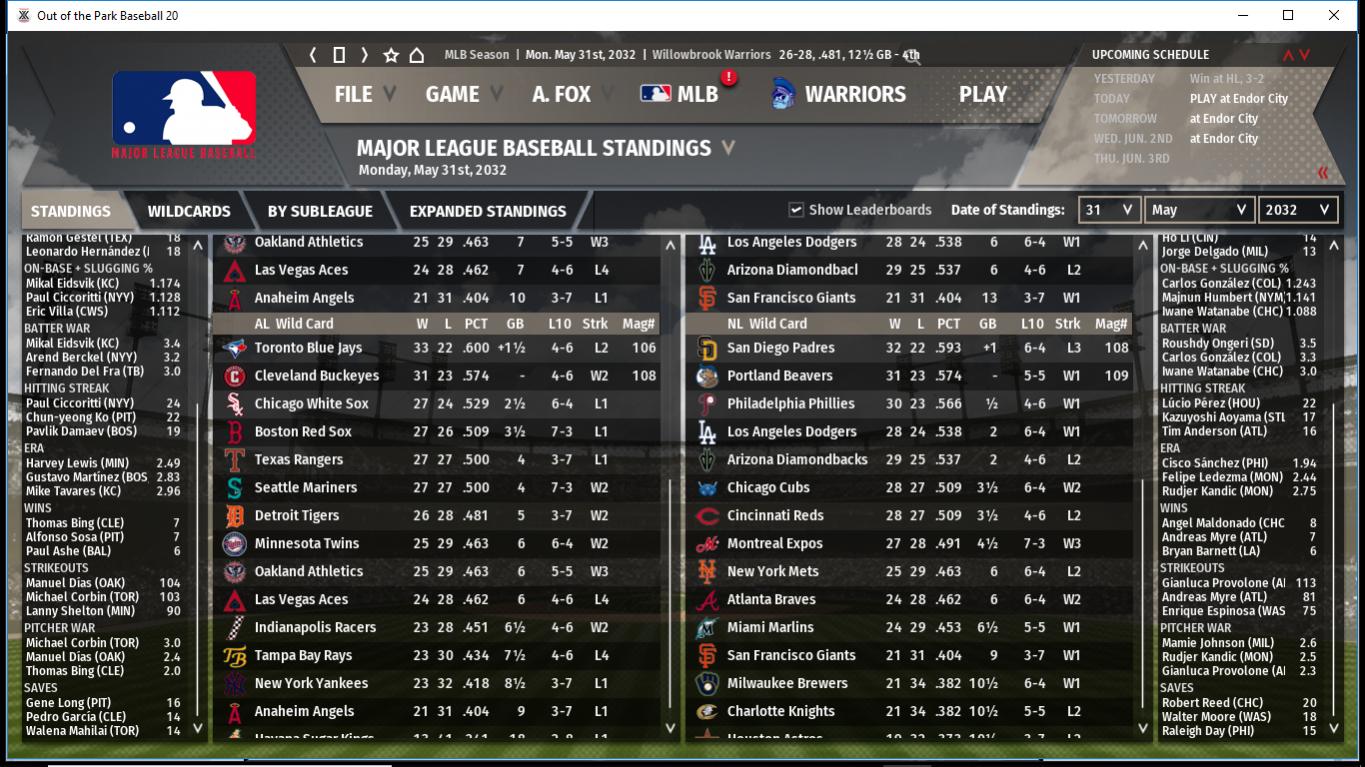 1 game @ Endor City to finish the month. Hopefully we can make it 7 in a row to close out the month. We are now 2.5 games out of the wildcard.
