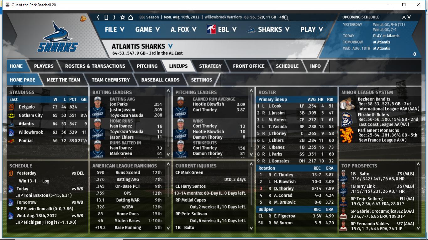 We are 5-8 vs the Batmen this season. The Batmen despite all their injuries are still within the wildcard race and are creeping up on Delgado as well. Both Bruce Wayne & John Wayne Jr are having off seasons as age is creeping up on both. Nebraska is a great hitter these days but he is no longer the dominant force on the mound he once was.