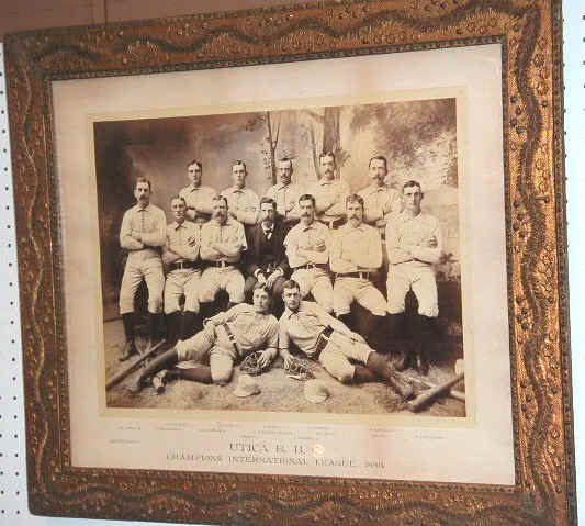 Utica IL 1886: Top row: William D. “Billy” Shindle 3B, Mike J. Griffin LF, Jim Halpin SS, Tobias C. “Sandy” Griffin CF, John E. “Scrappy” Carroll RF. Middle row: Emery J. “Moxie” Hengle 2B, J.J. Pendergrass P, Geo. W. "Jumbo" Latham 1B, David A. Dishler MGR, William I. “Billy” Serad P, James M. Toy C, Michael.J. Mattimore P. Bottom row: David J. McKeough C, John W. Hofford C. |