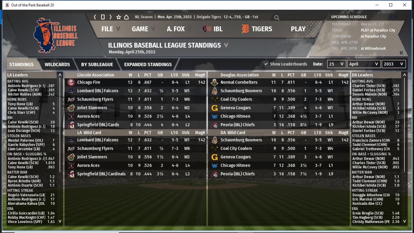 2033 IBL Weekly Standings