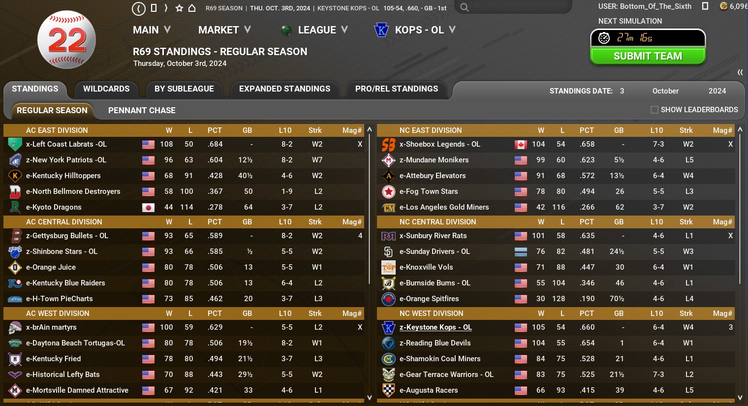 Keystone barely holds on to win their first Division Title by one win! ![]() R69 Playoff Picture looks like this: ![]() -30- |