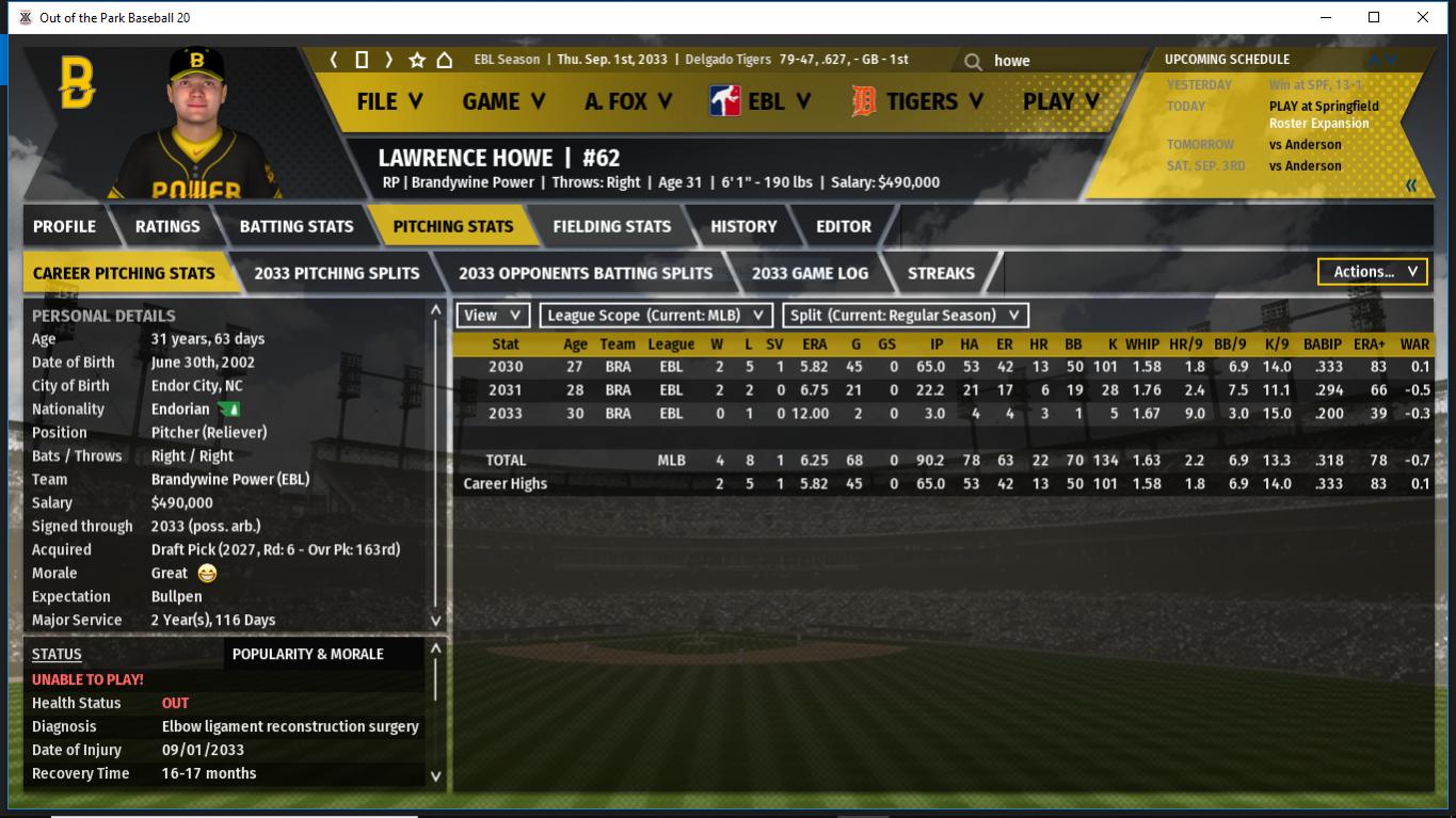 Bespin Sky Sox clinch the INTAAA NL West Division. Delgado Tigers sign SP Adam Hernandez to a 1 yr extension. Houston Astros claim 2b Dezevat Mladic off of Waivers from Endor City Capitals.