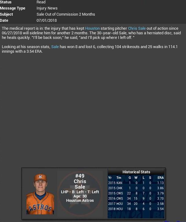 MR Rich Dale will be out til next year for Springfield (I was gonna injury him myself but the AI took care of it for me)