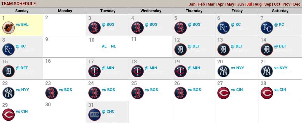 July looks to be a fun month. We have the All Star game coming up and should have 5-7 All Stars. Some divisional games, a few vs the AL East and then some more interleague. Looking forward to beating the Cubs in Wrigley Field.