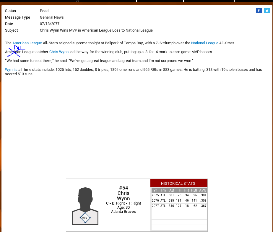 I got to that point in the season where International Free Agents are available. These are the 16 year olds that are looking to break into the league. If you completely ignore it, I don't think you will get any personal e-mails from the free agents. But this time I decided, for shiggles, to offer the guy with the highest potential a minor league deal with a small bonus and I looked at the profile of the guy with the second highest potential. OMG, did I get e-mails. Not only did I get e-mails from the guy I offered a contract to but I think I got multiple e-mails from every player that was on that list. I got a personal e-mail from these International Free Agents almost everyday for two months until they where all signed. Almost all of them indicated that I offered each a contract of some type (I didn't, not even by mistake) and some seemed to think that they were already signed by me and said things like "I like playing in your organization and wish to continue to do so but you are going to need to offer me more money," and "Is this how you reward loyalty?" This is a minor thing but it is a little annoying. Is there a setting in the game where I can get rid of this part of the season. Regards |