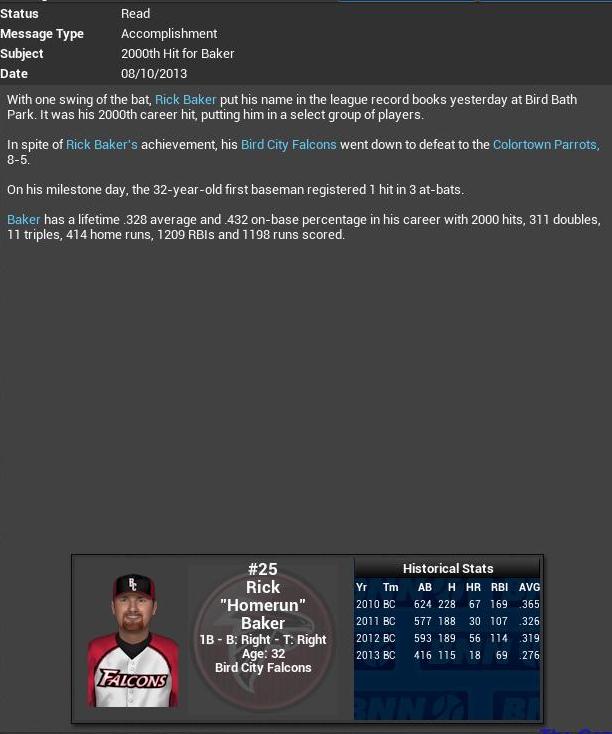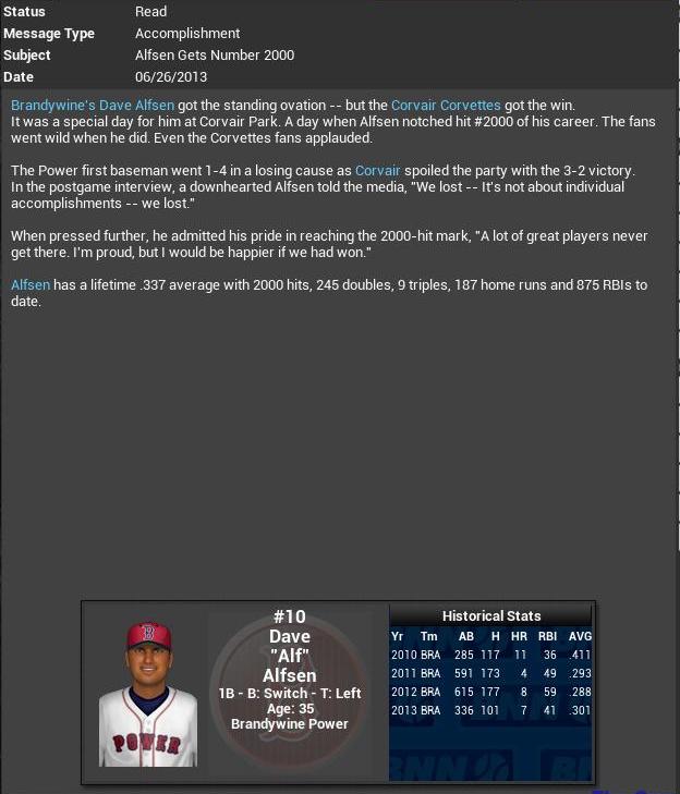 Willowbrook is really good but overall I can not figure out why. They do have a great CL/MR in Tim Danz who was just drafted this year by me. Oko and Granger are both having great seasons. Dugan is killing it in the NL. Dave Alfsen joins Nick Sullivan as the only other player with 2000 hits. Thought the ML trade was interesting.