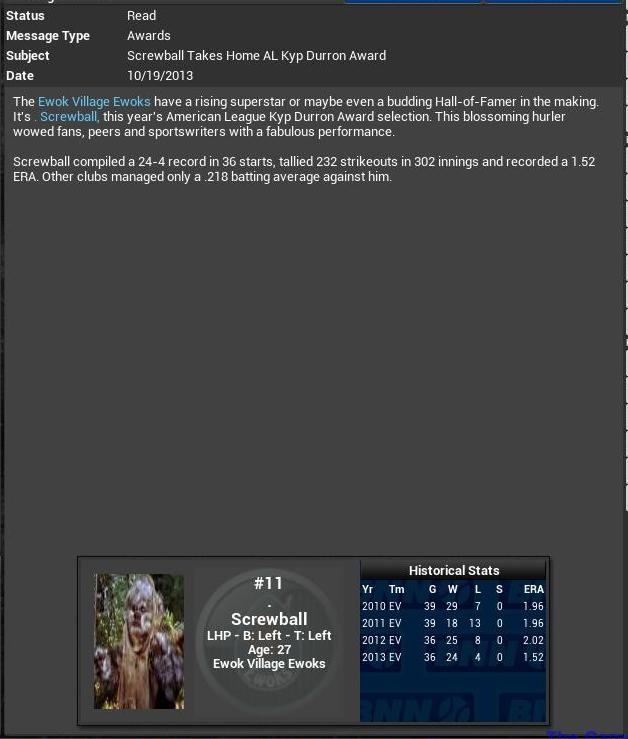 Oko won the AL batting title. Playoffs should be good. Ewok Village vs Colortown. Glenbard vs Corvair. I am picking Glenbard to beat Ewok Village in 6.