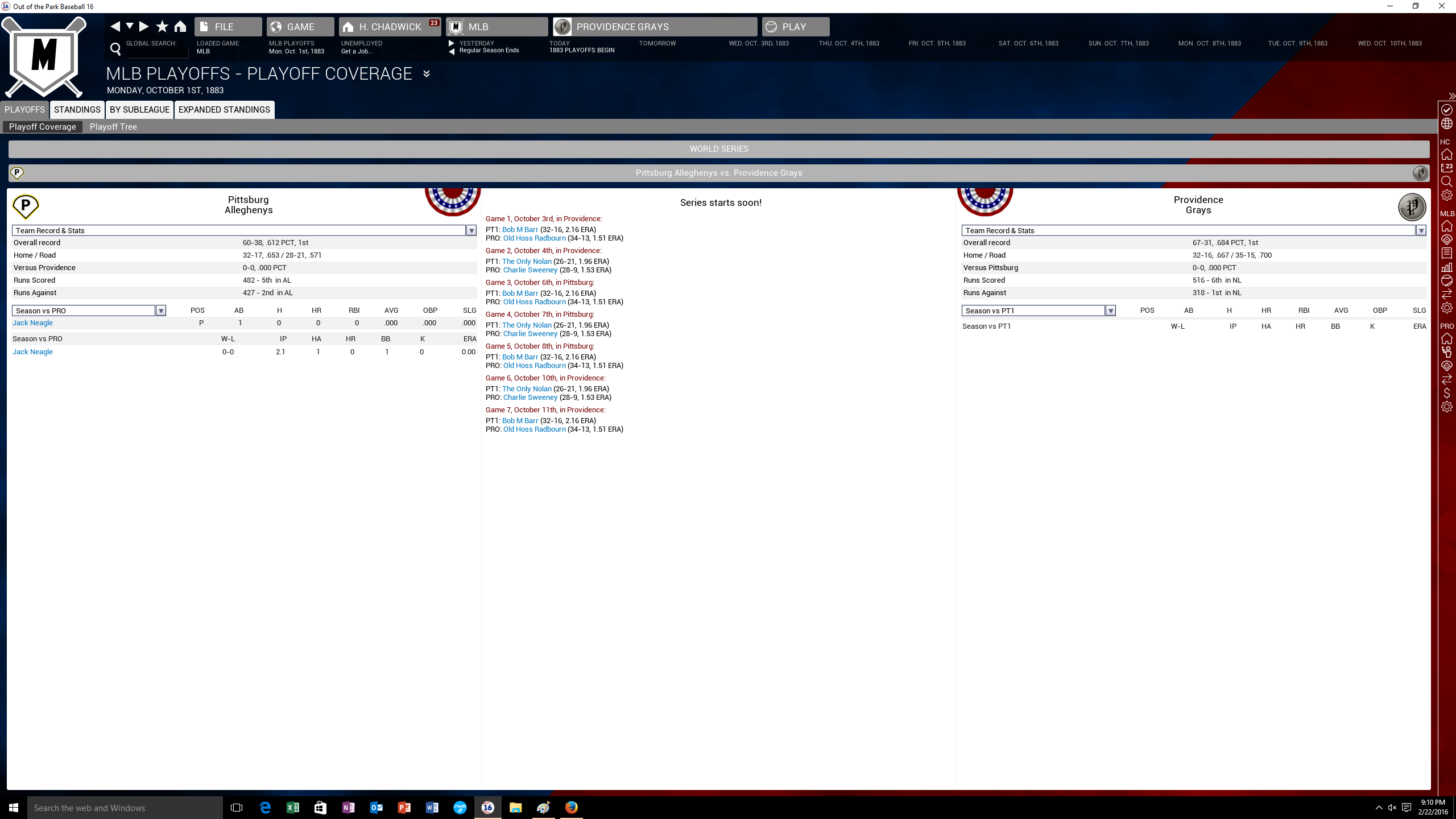 Have to restart the 1883 season. I didnt save the file. Lucky i save at preseason, before offseason and at the end of the year.