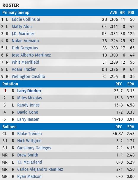 I made a big change early in the day when I gave up on Albert Belle, my gold pull in my initial packs in favor of Will Clark. Belle was batting in the 220 range with only 18 HR in 145 games. Since slotted into the cleanup spot 11 games ago Clark is hitting .360 with 6 HR. Should be an exciting finish |