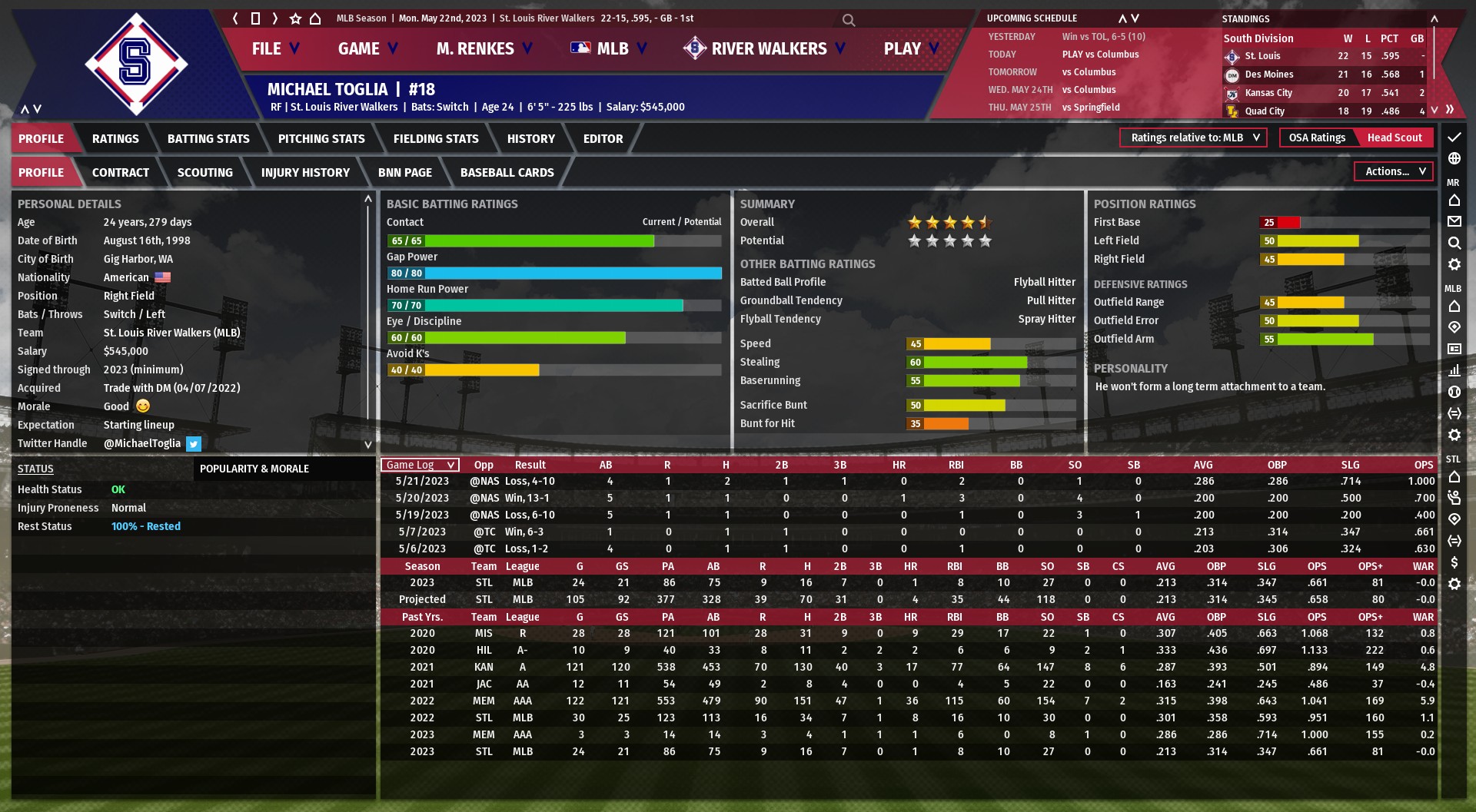 Walkers news: May 22 -- Toglia called up from AAA Memphis; Carmona sent down to Redbirds