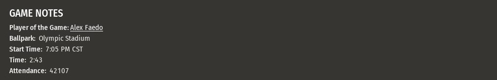 Kansas City pounded four home runs and jumped out to a 11-4 lead, before holding on to defeat St. Louis 11-6 at Busch Stadium (1997). The Pit Masters seized control with a five-run third inning, which featured an RBI ground out from Greg Jones and run-scoring single from Blaze Jordan before Danny Cushing hit a three-run homer, to go up 5-0. Carlos Vidal, who went deep twice, led off the fourth with a homer off Kansas City starter Dominic Pipkin and the Walkers also got an RBI single from JT Schwartz to make it 5-2. St. Louis then sliced the deficit to 5-4 in the fifth when Vidal hit his second homer of the game. But Kansas City broke it open again the seventh, this time with a four-run outburst. Yasmani Grandal got it started with a two-run homer off reliever Tim Hil. Josh Shuler followed with another two-run shot, this one off Derek Gordon, to make it 9-4. Shuler would add another two-run homer in the ninth, this one also off Gordon. Pipkin handled the first 5.2 innings, allowing four runs on six hits. Kyle Nelson (1.1 IP), Austin Hansen (1.1) and Noah Murdock (0.2) handled the rest of the game. |