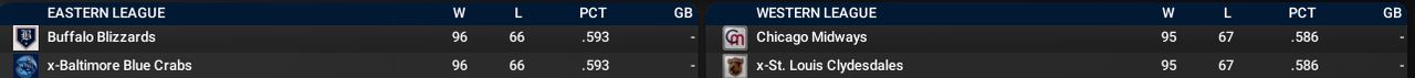 ![]() St. Louis and Baltimore prevail in tne tie-breakers and head to the Series with the Clydesdales looking to win 4 in a row. |