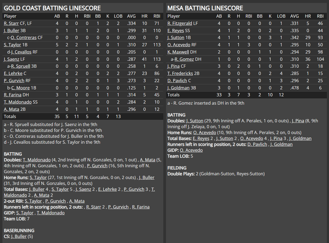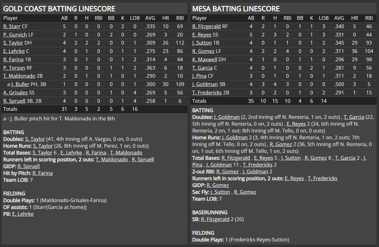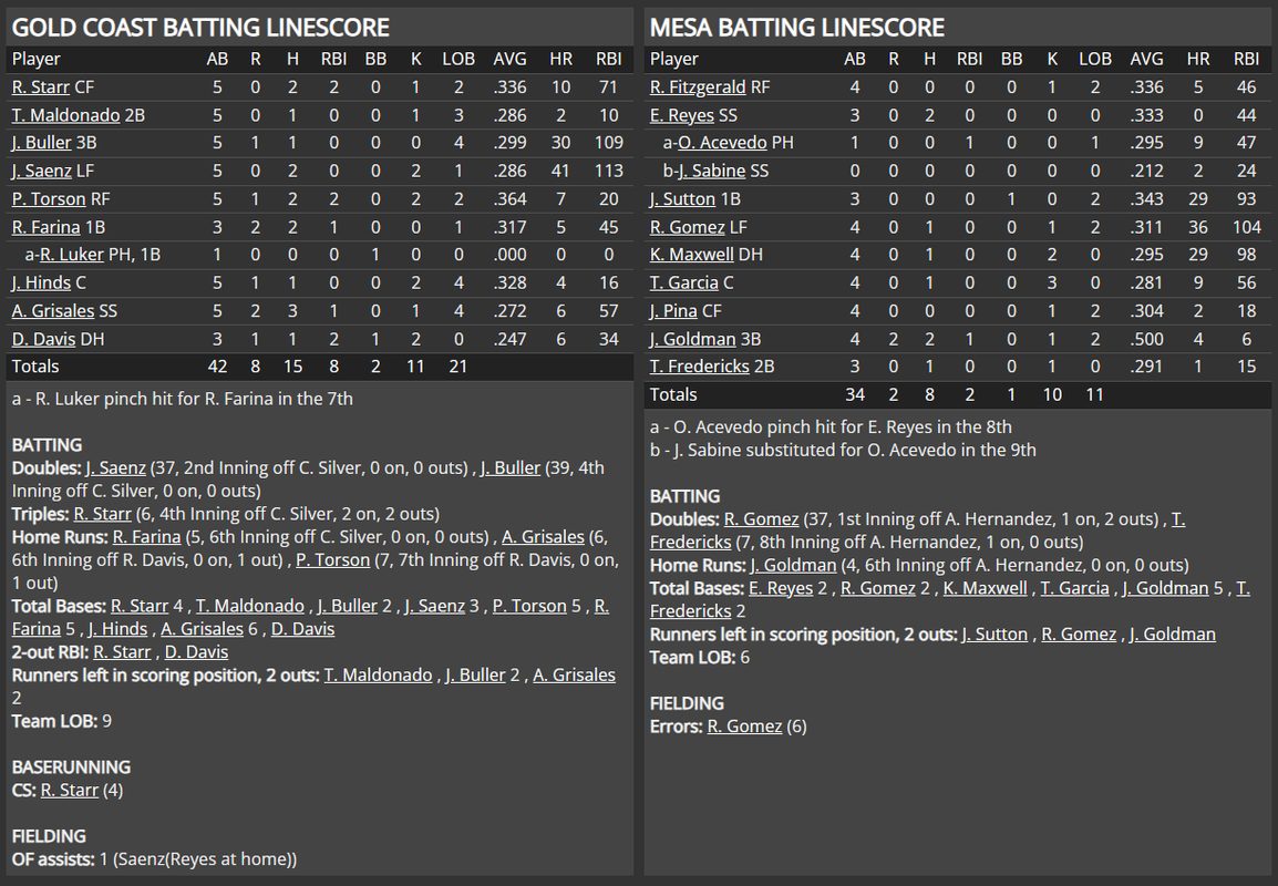 With 2B depth acquired by Mesa, Reid found himself as the next money-saving situation and was traded for a very good 3B prospect that should be MLB ready about the time 3B Kaynetli is due for a big arbitration raise or free agency. I have to be honest: I did not realize Reid could also play SS, and he may have been a better option at SS than what we've been playing. Over sight on my part.