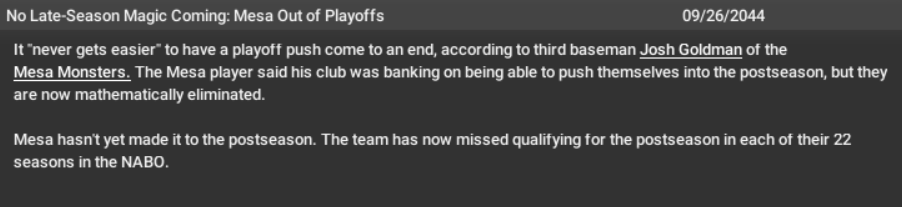 Go Back   OOTP Developments Forums > Out of the Park Baseball 25 > OOTP Dynasty Reports